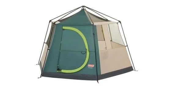 - Hinged Doorâ„¢ – the patented Hinged Doorâ„¢ from Coleman® makes it quick and easy to come and go from your tent