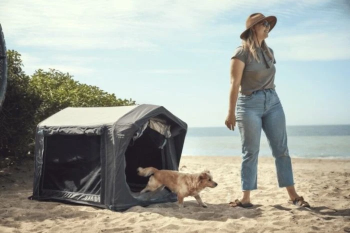 This inflatable dog kennel is perfect for day trips in the car and holidays in the outdoors. The Dometic K9 80Â features lightweight, durable fabric to ensure comfort and safety for your dog. This versatile kennel is easy to clean, packs down compactly and has a carry handle for easy transportation – so you can take the family dog with you on every adventure!