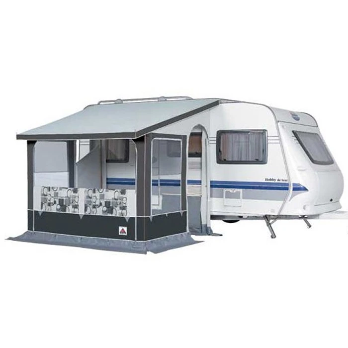 DOREMA OSLO PORCH AWNING This 4 season universal porch awning is designed for the most ardent of winter and touring campers in mind. It’s functional design and materials lends itself ideally to all season or winter use. Made of a very strong PVC coated polyester material that is very simple to clean. Both sides walls have a door fitted and the front panel can rolled down or removed.