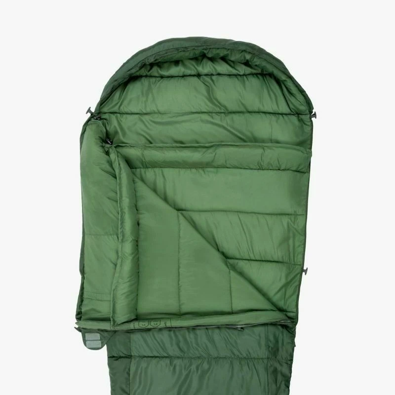 STAY WARM – A soft polyester Pongee lining and 150gsm spiral hollowfibre filling give this sleeping bag good insulation for warmer nights.