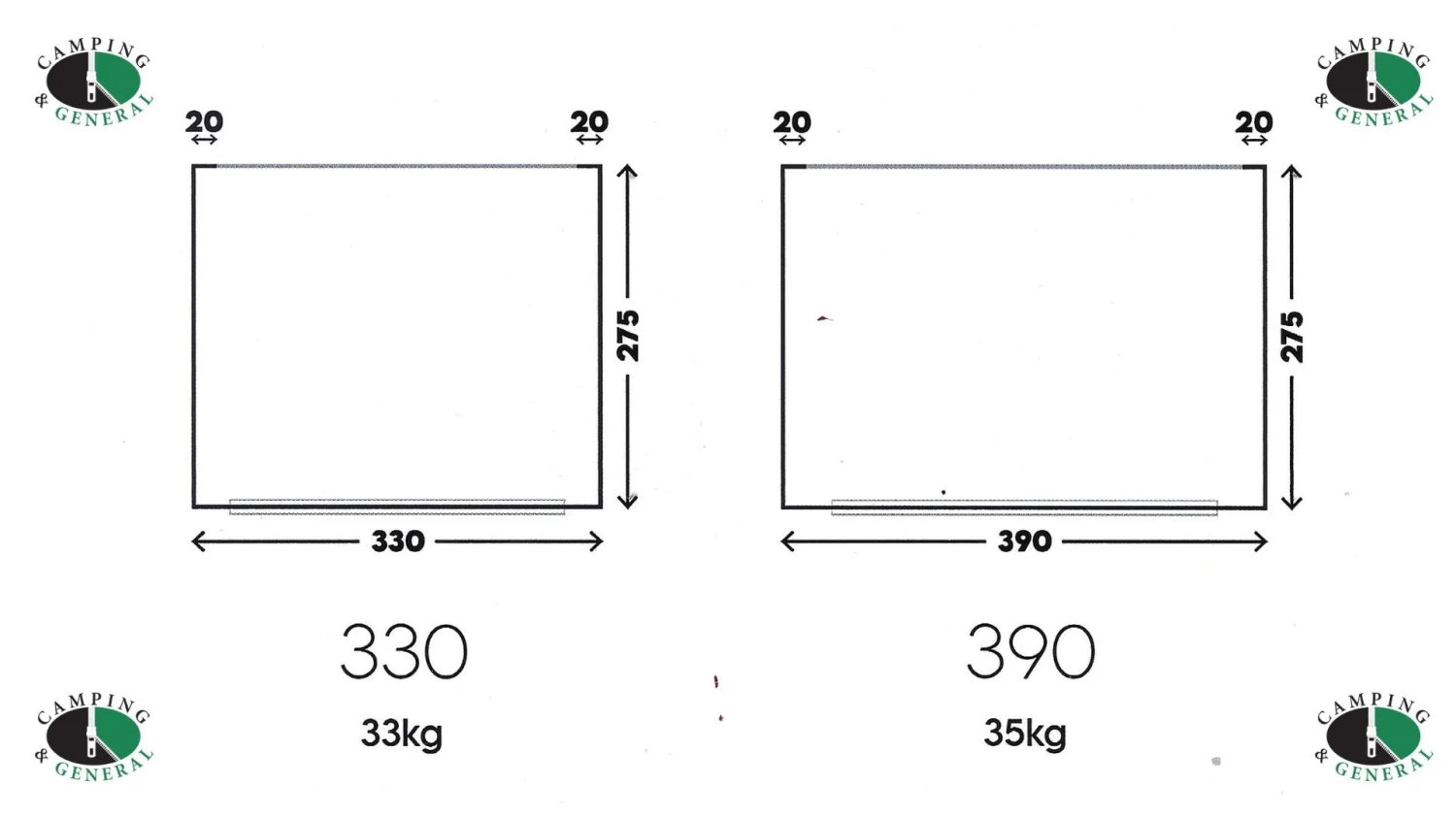 390CM WIDE 275CM DEEP 35KG